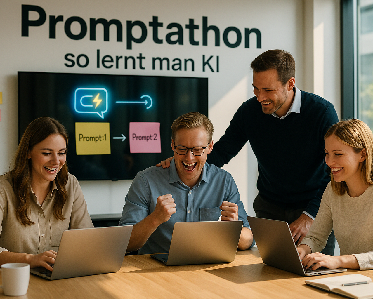 Ein Promptathon ist kein Vortragsformat und keine Spielwiese für Tech-Nerds. Er ist eine geleitete Arbeitssession (2–8 Stunden), in der gemischte Teams echte Alltags-Challenges mit Generativer KI (z. B. Microsoft 365 Copilot, ChatGPT) bearbeiten – mit klaren Deliverables/Ergebnissen, Qualitätskriterien und Follow-up.